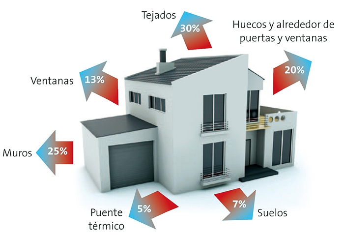 En esta imagen podemos ver las pérdidas de energía de una casa. Nosotros tenemos soluciones para cada problema de aislación.